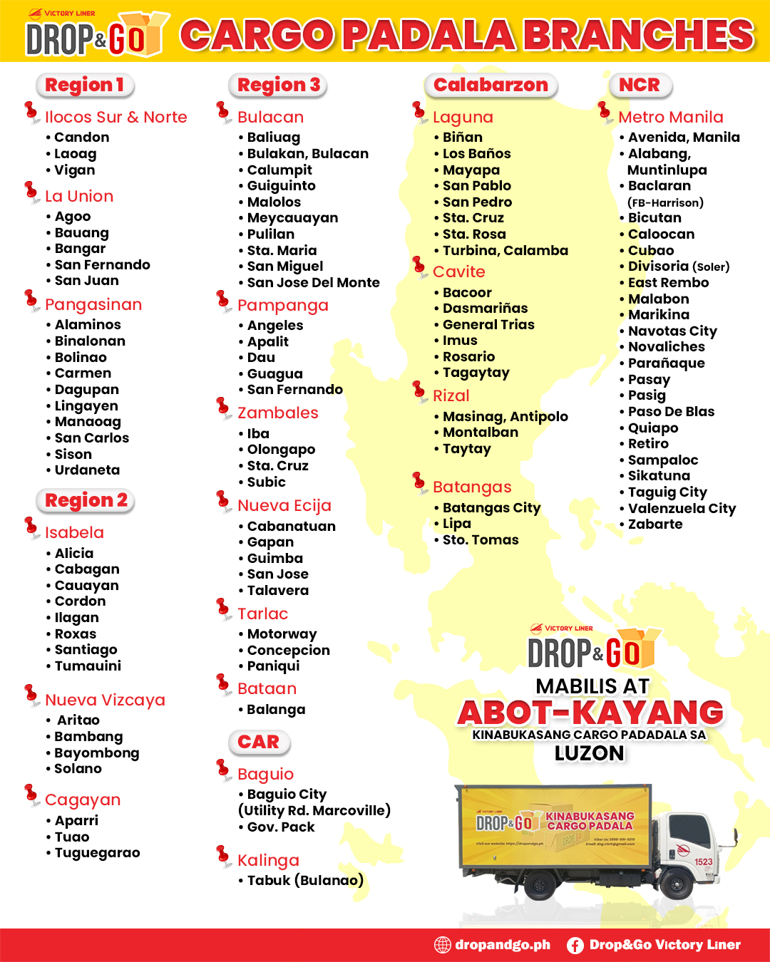Drop&Go Cargo Padala is Victory liner’s streamlined cargo delivery service, offering next-day delivery across Luzon. Ideal for small businesses with perishable goods or those seeking a fast, reliable, and hassle-free service, Drop&Go caters to both individual clients and businesses. It bridges the gap between sellers and buyers in the e-commerce space, tackling order fulfillment challenges and providing a logistical solution that enhances the overall customer experience.